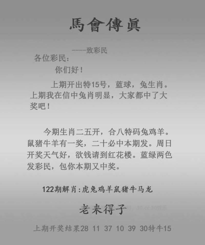 | 126期:☆天地中特☆【天肖】开:兔39中 |